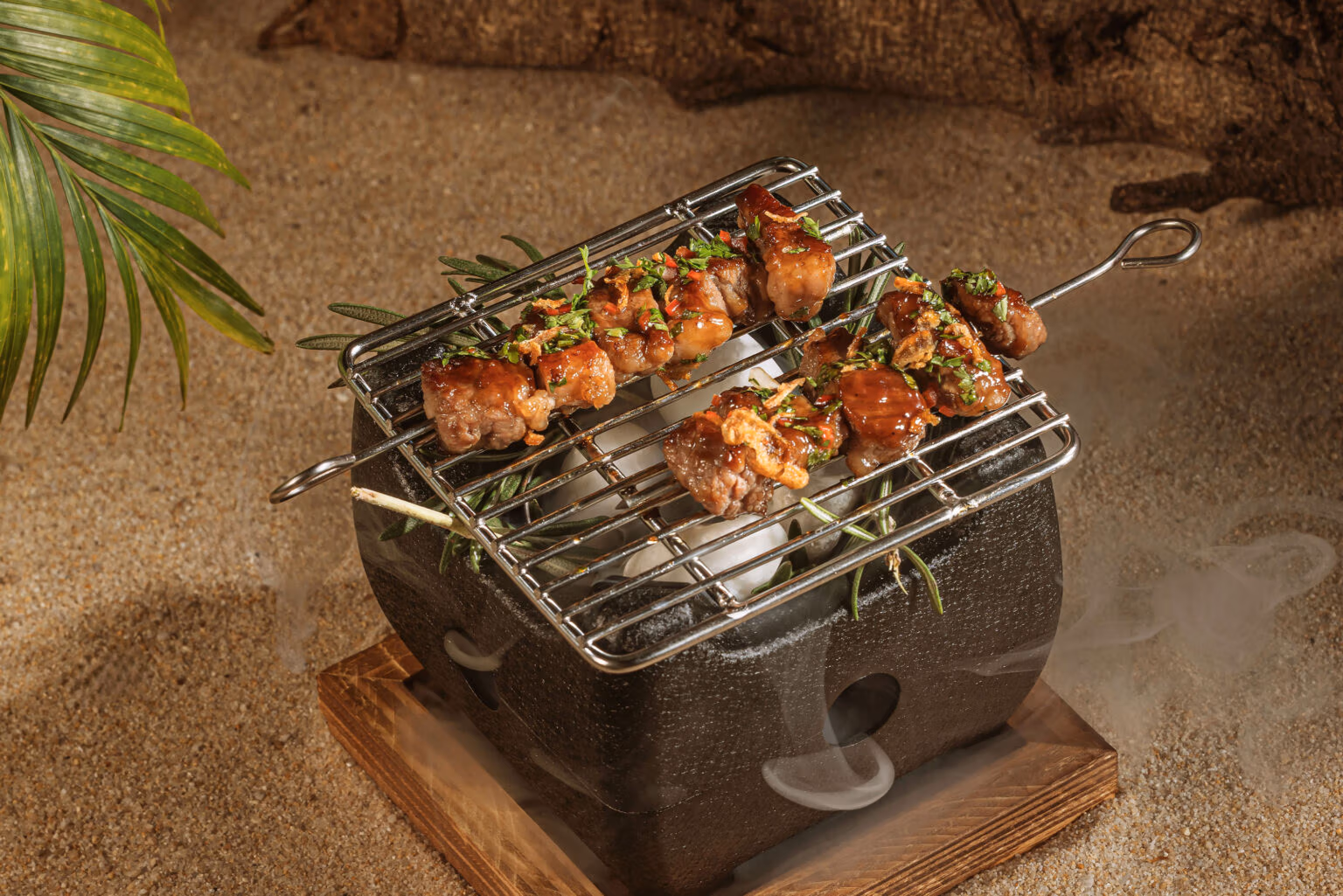 Grilled lamb skewer seasoned with Maya spices. 599 ฿