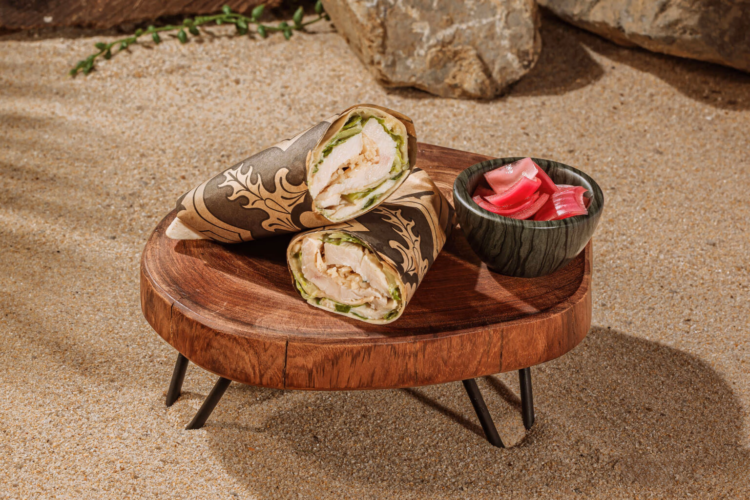 Wheat tortilla, Caesar dressing, 36-month Parmesan, bacon, roasted chicken breast, romaine lettuce.