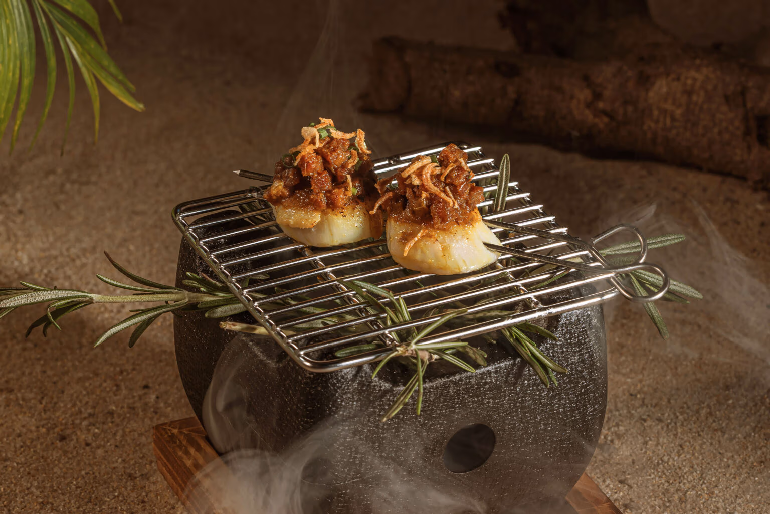 Delicate mini skewers where tender scallops meet lightly spiced chorizo. Coconut milk and curry add a creamy, aromatic touch to every bite. 549 ฿