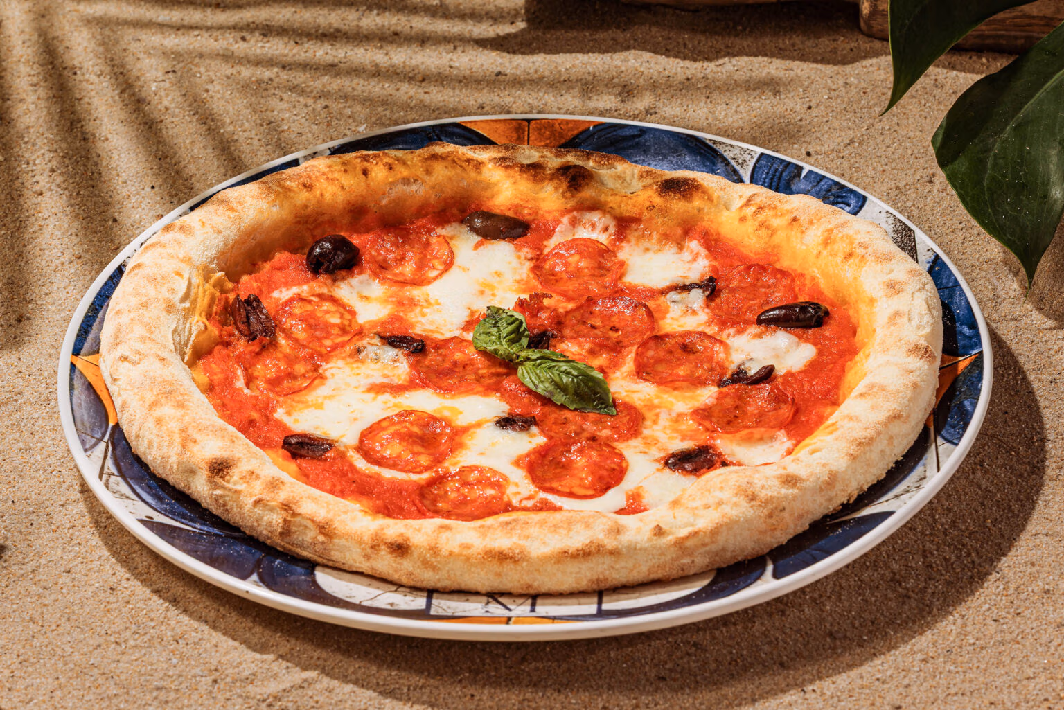 Tomato sauce, Fior di Latte mozzarella, spicy salami, chili, Taggiasche olives 749 ฿